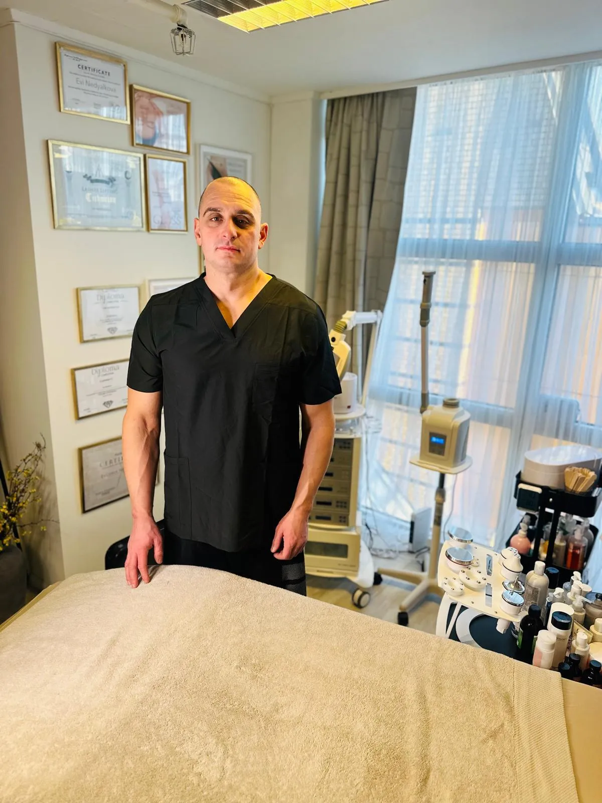 Unn deg en avslappende stund med Petar hos Evi Beauty! 💆♀️✨ Han hjelper deg med å løsne spenninger, redusere stress og gi kroppen den pleien den fortjener. Bestill din revitaliserende massasjebehandling i dag! 🌟👐